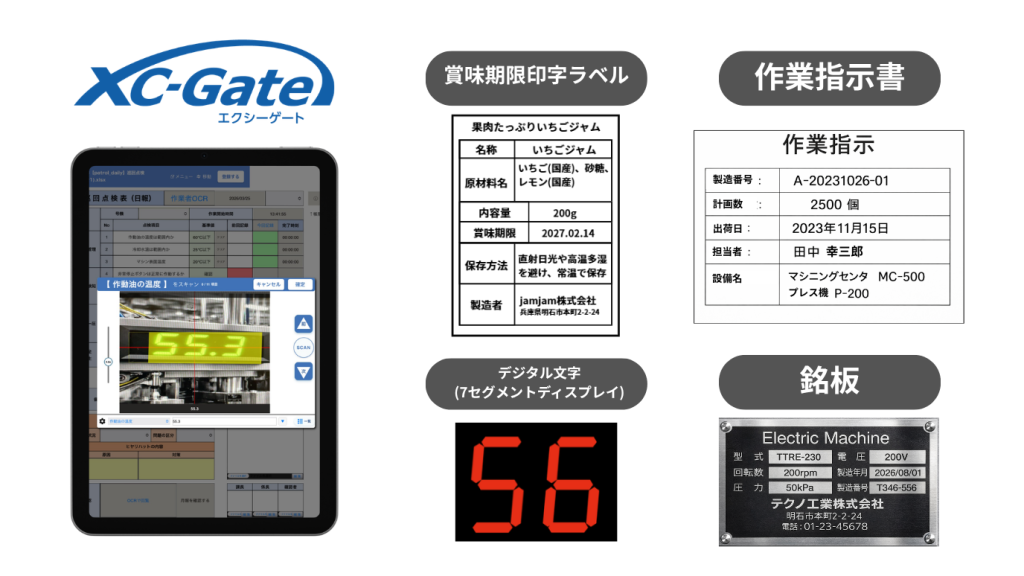 設備などに付随しているデジタル文字を読み取り、温度や生産数などの正確な情報を取り込むことができます。
