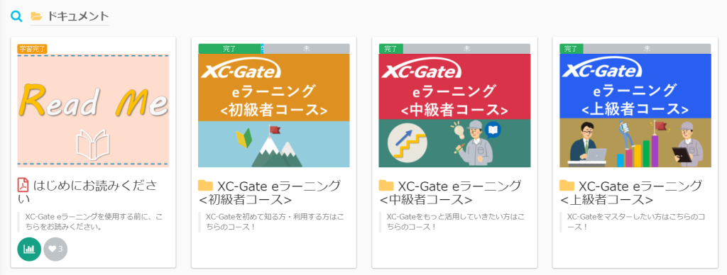 XC-Gate eラーニング内では、初級者、中級者、上級者別でフォルダを分けており、その中に