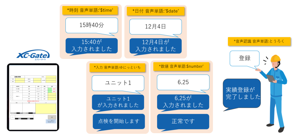 従来のXC-Gateの帳票作成と同様、Excelだけで音声入力の指定ができます。