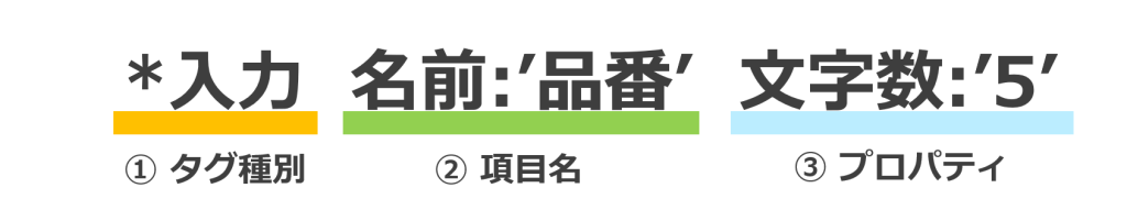 電子帳票上でどのような入力機能・参照機能にするのかをExcelのセルに設定する「日本語の命令文」をタグと呼んでいます。文字情報(テキスト)をExcelのセルに入力していきます。