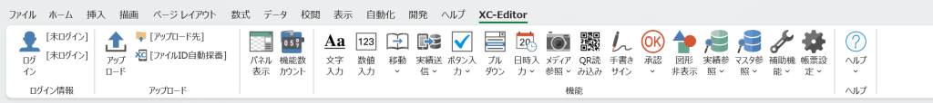 インストールすると、Excelのタブに「XC-Editor」と追加されます。