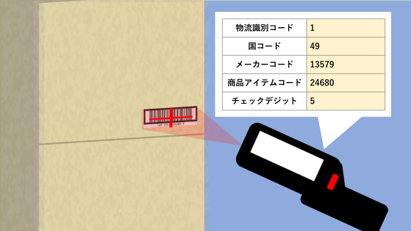 例えばこちらのコード読み取り画面では、ハンディターミナルで読み取ったバーコードの値を