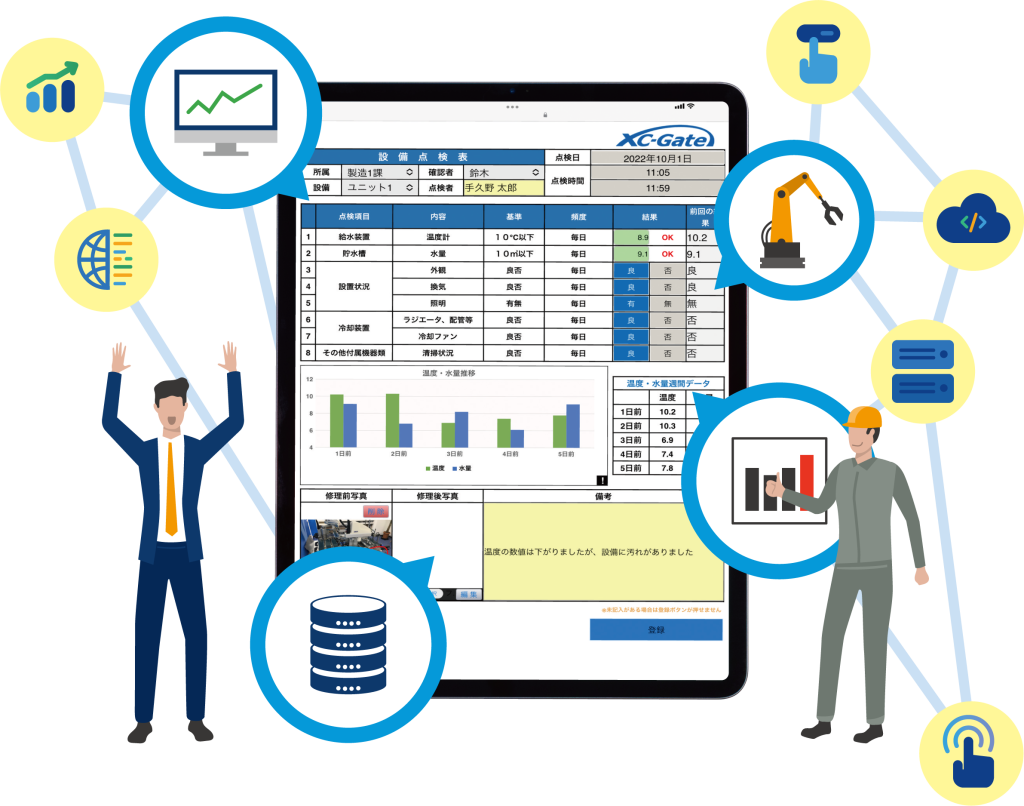 音声入力を行う命令文(タグ)をExcelの帳票内に入力して、「XC-Gate.V3」にアップロードすると、音声の読み上げ・音声の入力ができるようになり、現場で入力内容を発話するだけで電子帳票に入力することができるようになります。
