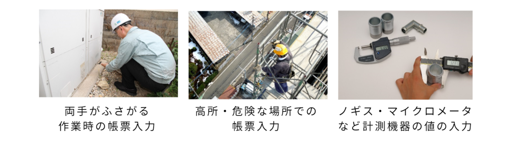 音声入力を活用すると、作業をしながら「ハンズフリー」で電子帳票への入力ができるので、作業と入力両方で効率化に貢献します。