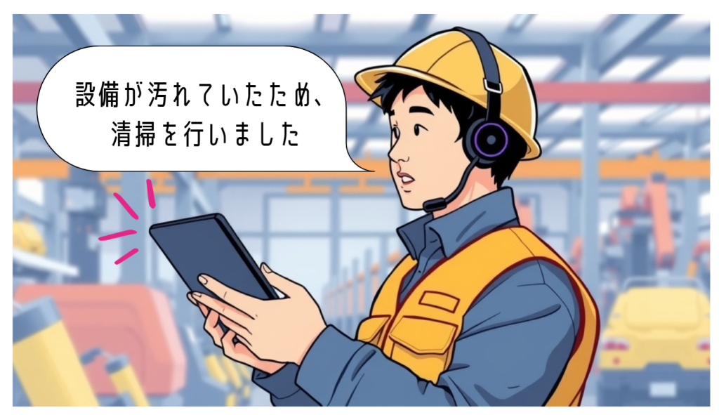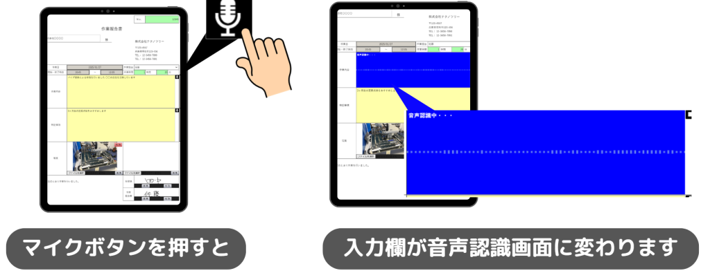 音声によるテキスト入力機能のサンプル帳票(メンテナンス報告書)