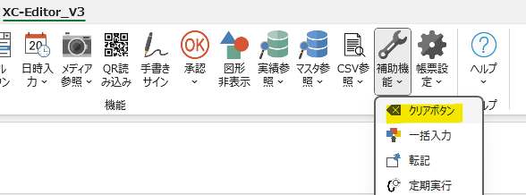 内容をクリアするボタンは「XC-Editor」にある[補助機能]>[クリアボタン]で設定可能です。