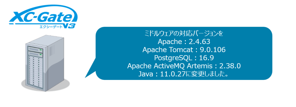 サーバーのミドルウェアが下記の通り変更となります。XC-Gateサーバーの詳細スペックはWEBサイトよりご確認ください。