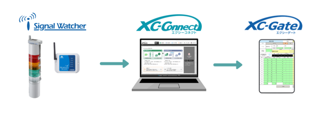 このような課題に対し、因幡電機産業株式会社が取り扱う「シグナルウォッチャー」と、現場帳票電子化システム「XC-Gate(エクシーゲート)」を連携させることで、設備稼働データの取得から帳票活用までを一元化できます。
