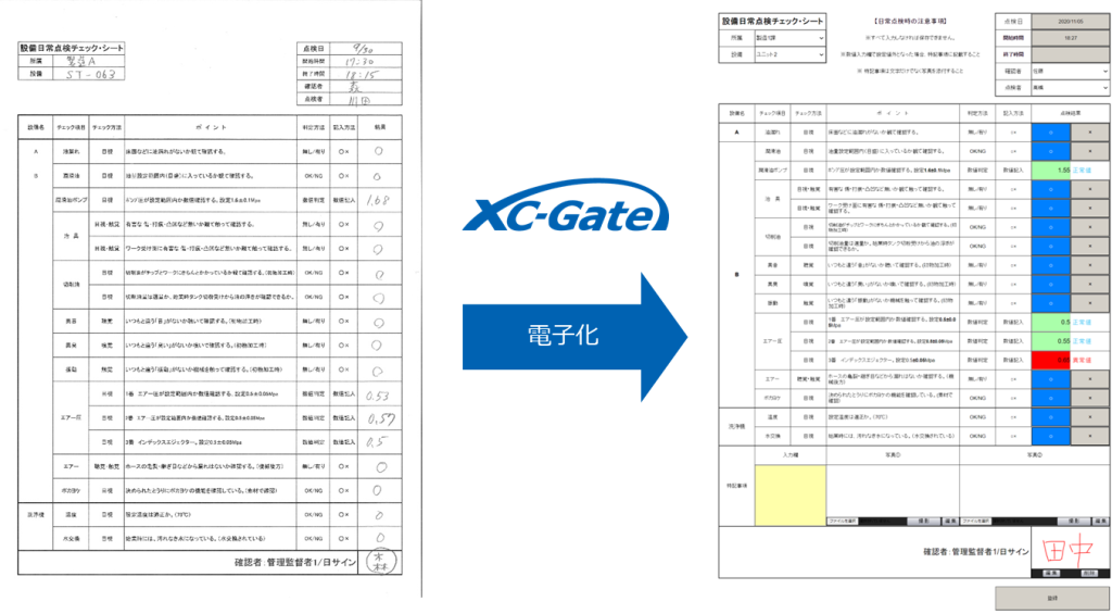 まず、作業者は「XC-Gate」上の電子帳票に必要な情報を入力します。