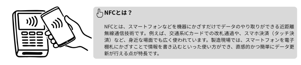 NFCを活用することで、データ入力から表示までをシームレスにつなぎます。