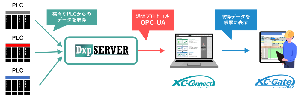 とはいえ連携したい機器の種類は現場によって千差万別。そんな時にOPCサーバーを中継することにより、様々な機器からのデータをスムーズにXC-Connect側へ取り込むことができるようになります。