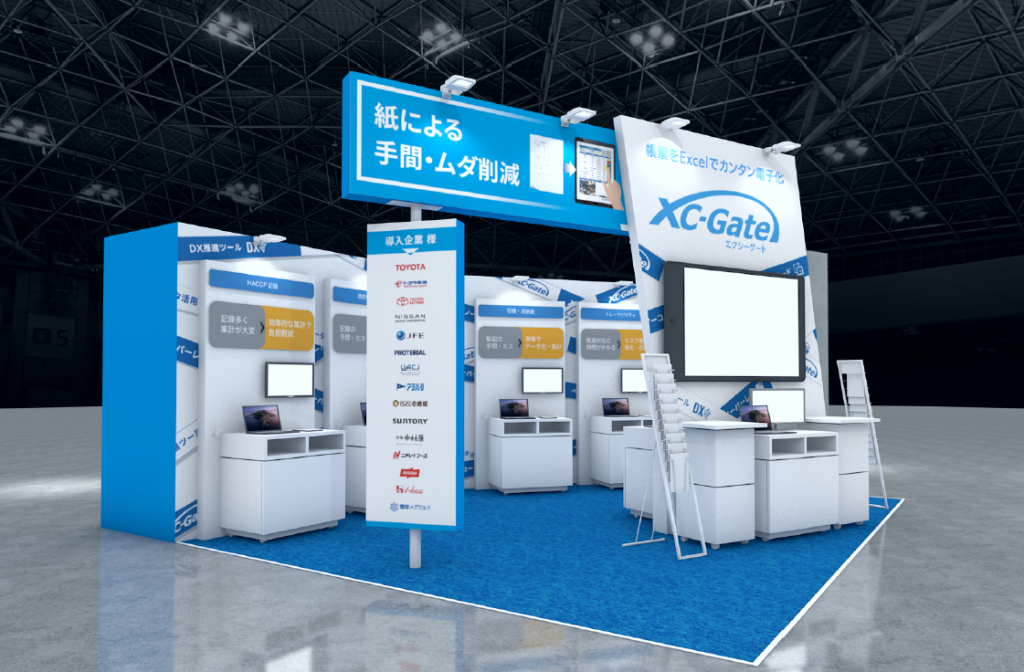 出展内容は、「XC-Gate(エクシーゲート)」を活用したソリューションとして、「帳票をExcelでカンタン電子化」と掲げ、日報・点検表・HACCP記録・官能検査記録といった、食品業界の皆さまが普段紙で記録されている各種現場帳票を電子化し、「紙による手間・削減」を実現できるツールとしてご紹介いたします。