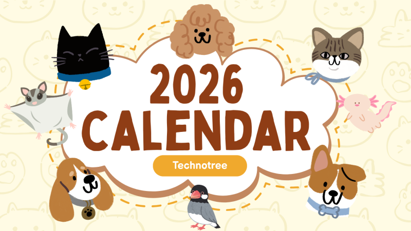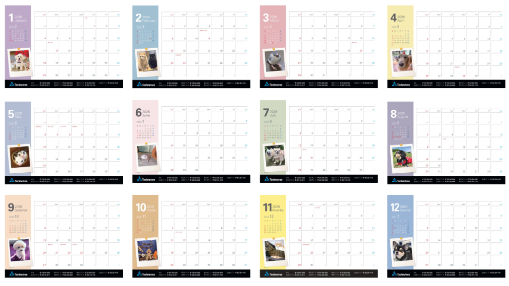 テクノツリーではもはや恒例となってまいりました、テクノツリーペットカレンダー2026年版が完成いたしました!弊社カレンダーの隠れファンの方や、主役であるペットの飼い主こと弊社社員に向けて、本記事でカレンダーの中身をご紹介させていただきます。