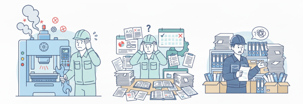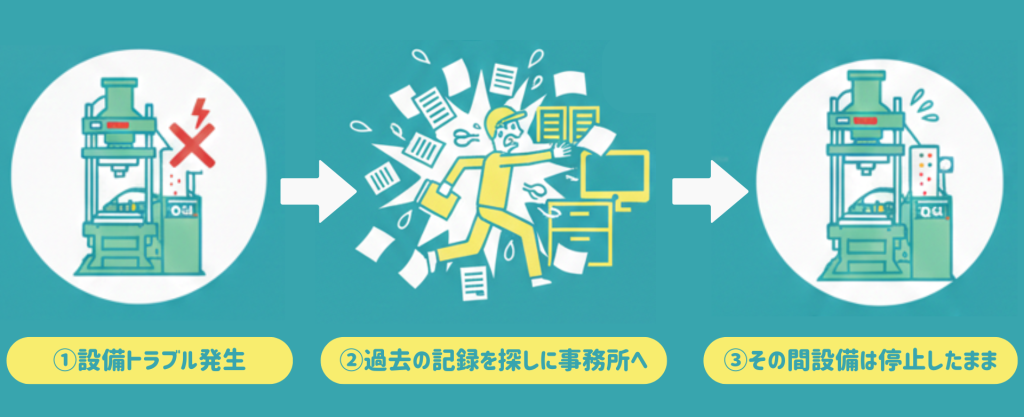 特に設備トラブルが発生した際には、過去の対応履歴をいかに早く確認し、適切な初動対応ができるかが、生産停止時間や品質への影響に左右します。
