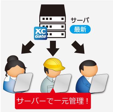 XC-Gateのバージョンアップや管理は、XC-Gateのサーバ内のシステム本体をバージョンアップするだけ!個々の端末のバージョンアップは不要です。