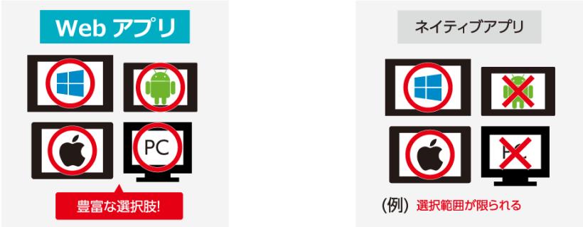 • Webアプリはブラウザベースなので、端末(iPad、Android、Windowsタブレット、PCなど)を選びません。