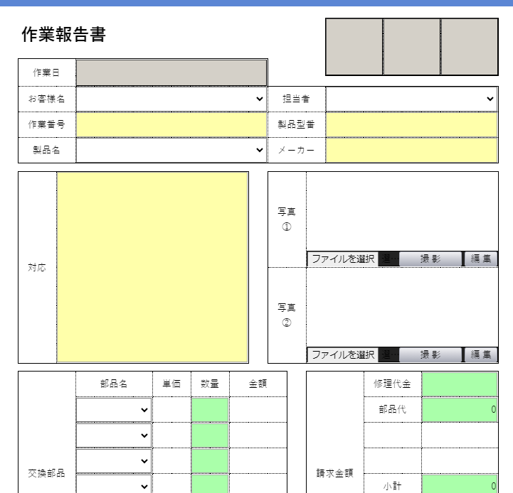 ・部品名やメーカーなど定型入力を簡素化し、報告用の写真も端末カメラで撮影したものをそのまま貼り付け