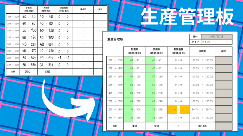 現在弊社も生産管理板の電子化を検討しています。もし記事の最後に生産管理板の電子化帳票(excel)を参考として提供していただければ、すごくありがたいですが