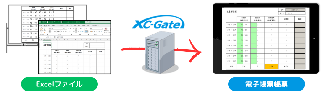 XC-GateではExcelファイルから電子帳票を作成できるので、生産管理板の元データがExcelの場合はレイアウトをそのままに電子帳票化でき、入力する現場作業者への負担も最小限に抑えられます。