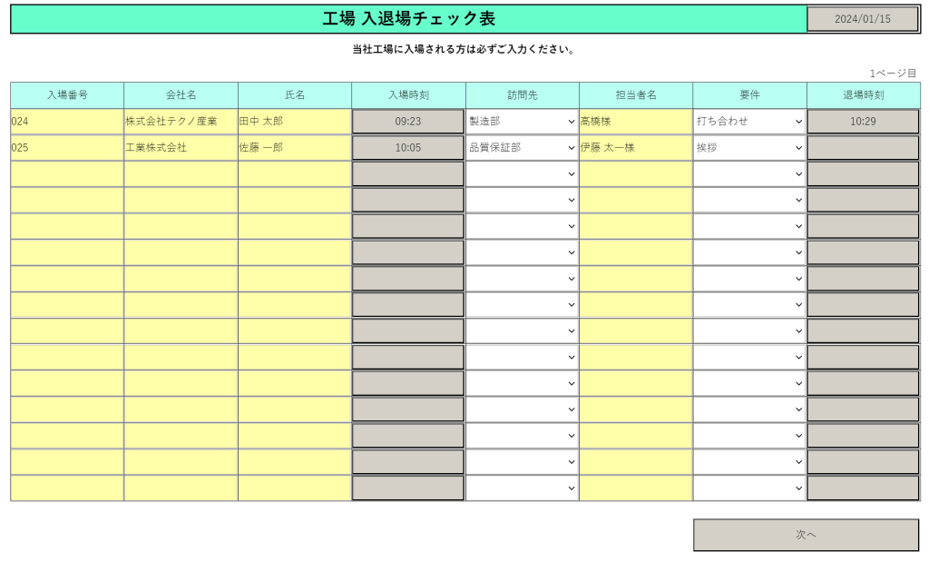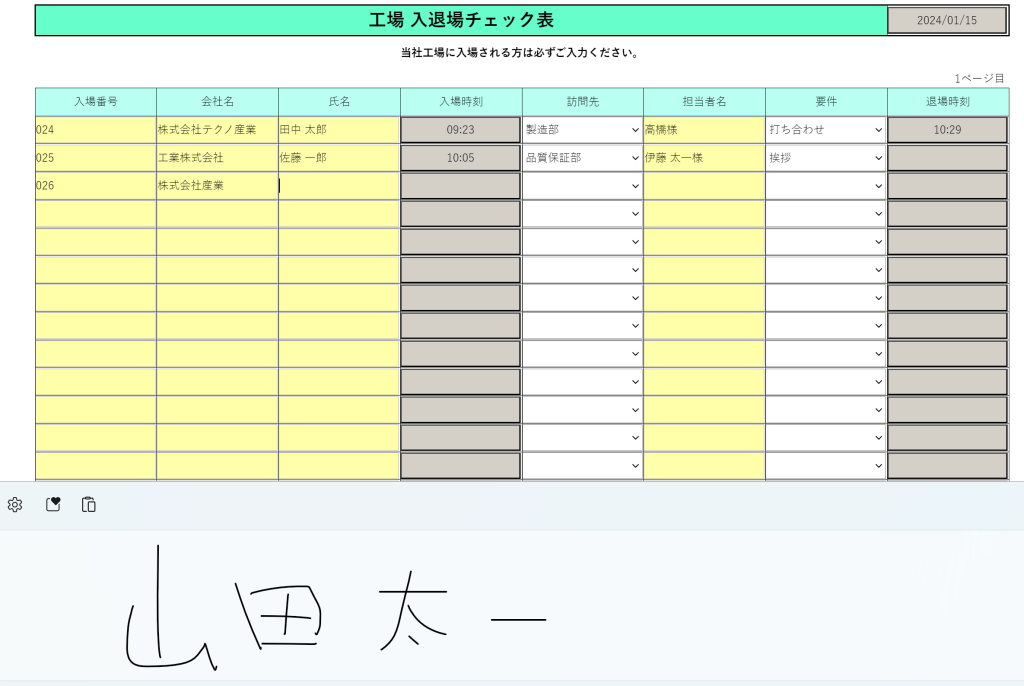 本記事では、工場や施設の入退場記録を電子化するにあたり、サンプル帳票をベースに活用例をご紹介いたします。