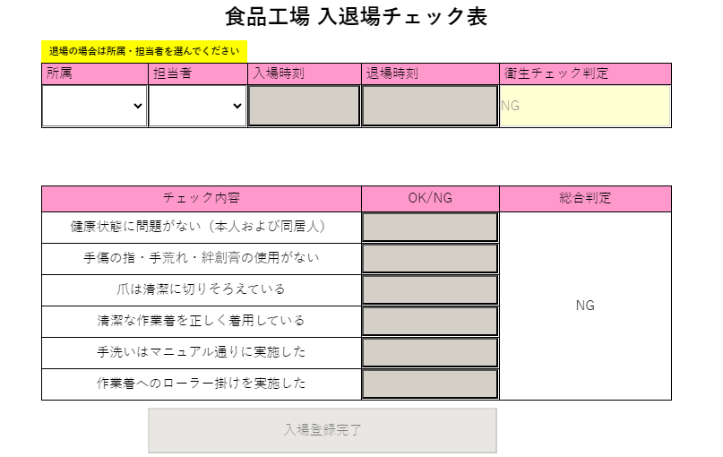 サンプル:従業員の入退場チェック(食品工場)