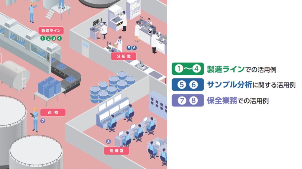 今回のソリューションマップでは、製造ラインでの実績入力に関する活用事例、サンプルデータ取得に関する活用事例、設備保全に関する活用事例を中心に、8つの活用事例を紹介しています。