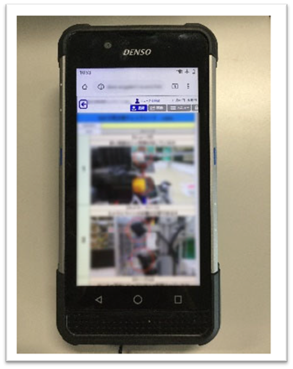 株式会社デンソーウェーブ様が自社のハンディターミナルを用いて、設備の点検結果の入力に活用されています。設備にQRコードを貼付しており、そちらを読み取らないと該当の点検表へ入力ができない運用を行われており、実際に点検箇所で入力を行ったという証跡を残すことに役立っています。