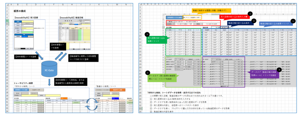 一方、できることが多い分、何がどこまでXC-Gateでできるのかを全て把握しづらいのも事実。そこで今回は「受入記録」と「製造日報」の実績を検索できるだけでなく、受入記録から関連する製造日報、またその逆を追いかけることができるトレーサビリティサンプル帳票をご用意しました!
