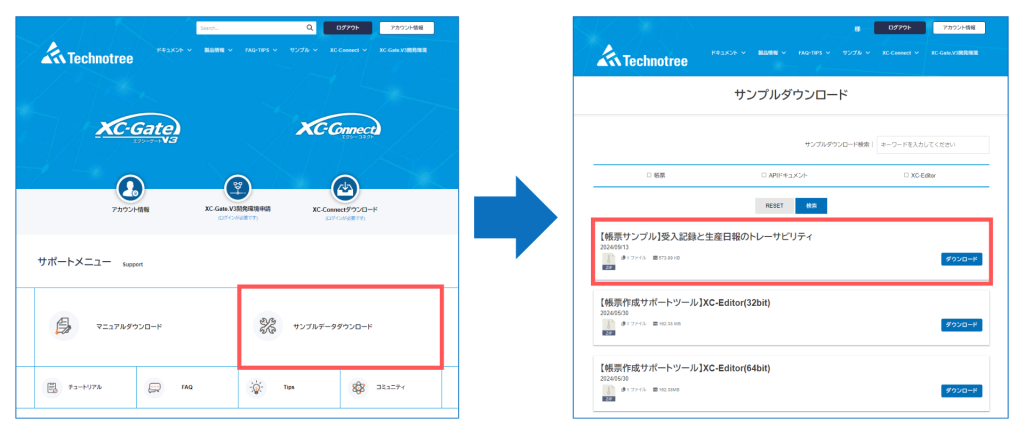 今回ご紹介したサンプル帳票は、テクノツリーデベロッパーサイトよりダウンロードが可能です。すでにXC-Gateをお使いの方は、帳票をアップロードするだけですぐに実際の動きをご覧いただけます!