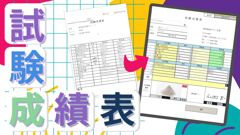 試験成績表とは、製品や材料が特定の試験を通じて基準を満たしていることを証明する文書です。試験成績書と記載しているものもあります。主に化学、食品、医薬品業界などで活用され、品質管理や顧客への品質保証を示す書類として重要な役割を果たします。製品出荷時に添付されることも多く、顧客や監査対応にも必要な帳票です。そのため、記載すべき項目は「誰が・いつ・何を・どの基準で試験し、結果がどうだったか」が明確に分かるよう構成されている必要があります。
