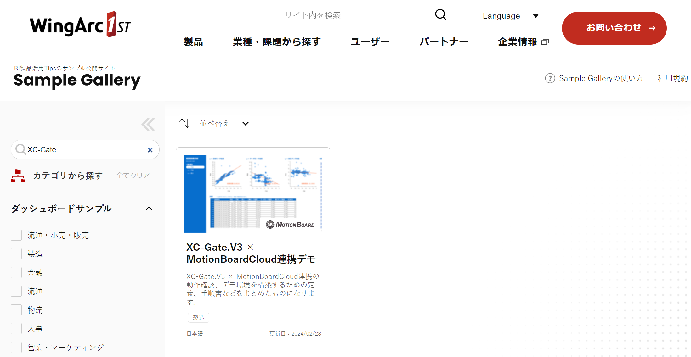 BI製品活用Tipsのサンプル公開サイト「Sample Gallery」に、XC-Gate.V3×MotionBoard Cloudの連携をすぐにお試しできる、サンプルファイルが公開されています。