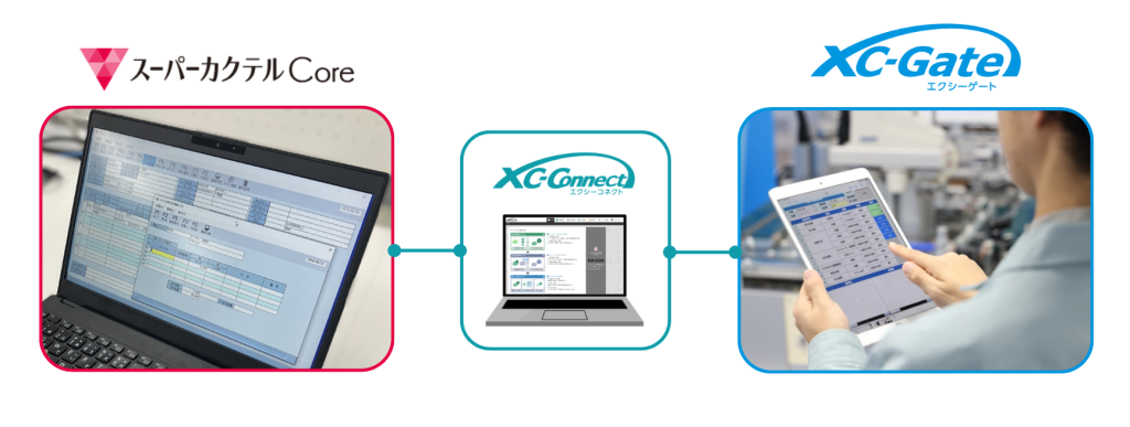生産計画や製造/販売情報を管理している「スーパーカクテルCore」と電子帳票システム「XC-Gate.V3クラウドサービス」は、「XC-Connect」を用いることでシームレスな連携が可能で、作業指示書の電子化を実現できます。