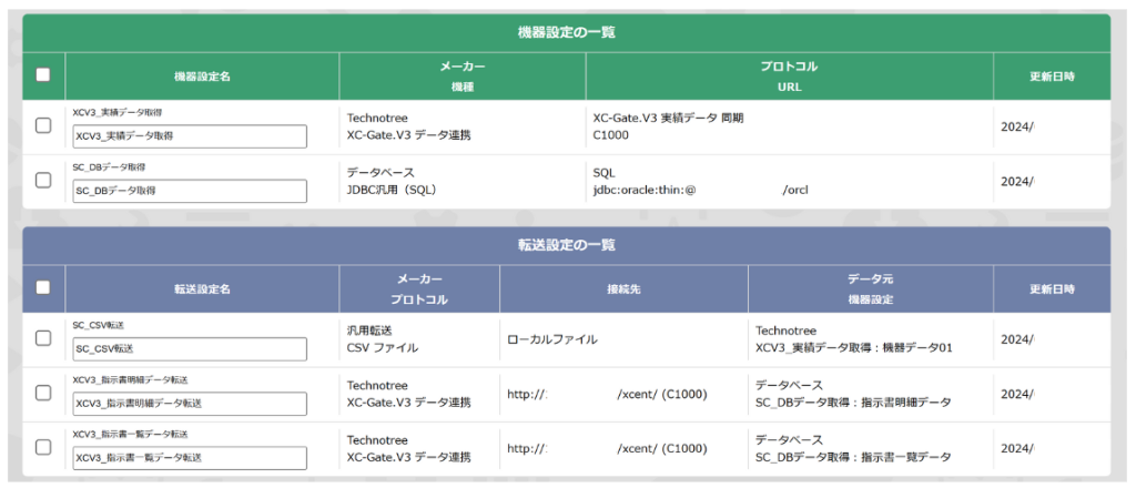 XC-Connectでデータを取得するための機器設定には、XC-Gate.V3とのデータ連携設定に加えてスーパーカクテルの指示情報を取得するためにデータベース(JDBC汎用)を使用しています。