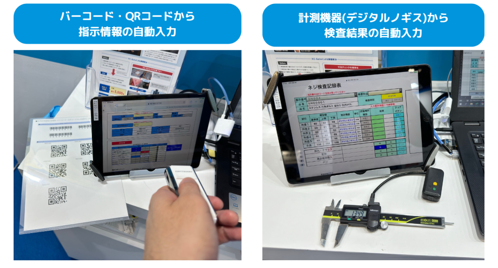 出展内容は現場帳票電子化システム「XC-Gate(エクシーゲート)」を活用したソリューションとして、「ノーコードで現場帳票を電子化」「計測結果の自動入力」「進捗の見える化 生産管理板」というように、お客様が課題を持たれている・ご興味を持たれているテーマをもとに、XC-Gateでどのように実現するのかの活用事例を帳票と合わせて展示いたします。